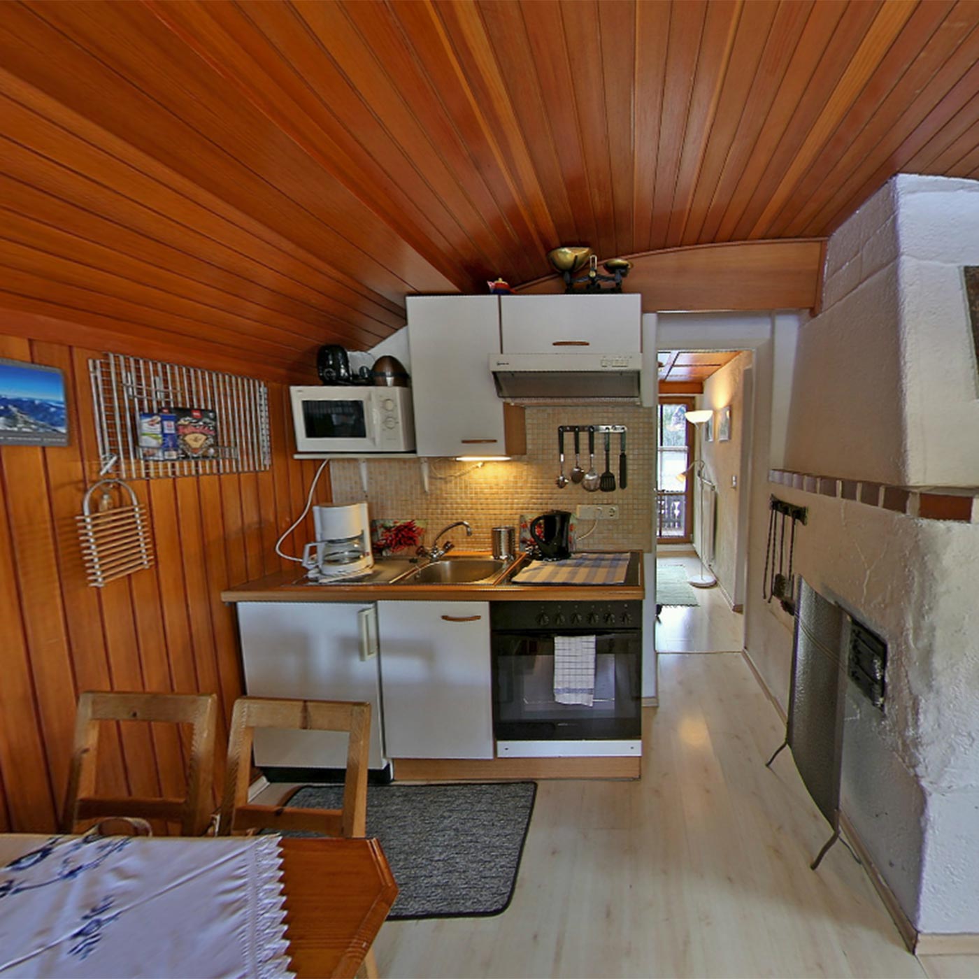 Die Ferienwohnung bietet Raum für 4-7 Personen, eine voll ausgestattete Küche (Mikrowelle, Kühl- und Gefrierschrank sowie Geschirrspüler) mit TV und Stereoanlage und Ausblick auf die umliegende Berglandschaft. Ab 8 Personen oder für eine kleine Gruppe von 1-4 Personen bietet der zweite Stock zusätzlichen Raum. Mehrere Balkone in unterschiedliche Richtungen laden zum Träumen ein.